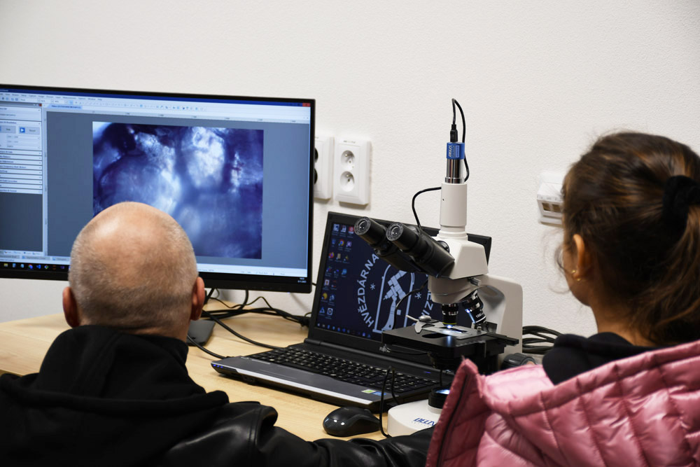 V novém přednáškovém sále měl pan ředitel Libor Lenža pravidelně přednášky o cílech KKC a dalších součástech rozsáhlého projektu, jako je modernizace observačních zařízení a vybudování zcela nové spektroskopické stanice až v dalekém Chile. O posledním zmíněném bylo ke shlédnutí 5 minutové video detailně zachycující zkušenosti a zážitky našeho týmu, které nasbírali při montování kamer a spektroskopů na vrcholcích chilských And, na La Silla. Toto video můžete shlédnout i nyní, a to pod tímto odkazem. Zájem návštěvníků byl po celou dobu zřejmý, padlo spoustu dotazů a doufáme, že i dostatek uspokojivých odpovědí. Dobrá nálada se v celém areálu držela i přes pošmourné počasí, a to za výrazného přispění výborné kávy z trucku meziříčské kavárny Tucan CAFÉ a možnosti zakoupit si za symbolickou cenu ke kávě též frgál. Mimo KKC se mohli návštěvníci podívat také do historické Ballnerovy hvězdárny a běžně nepřístupného odborného pracoviště v jižní budově, kde se dozvěděli, jak a proč na hvězdárně probíhá pozorování Slunce a spektroskopie meteorů. Součástí programu byla také přednáška o historii ke kulatému sedmdesátému výročí hvězdárny.