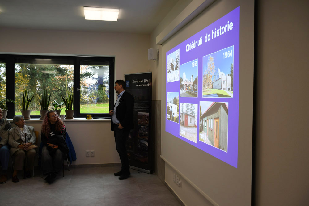 "Kromě samotné budovy a úprav v areálu projekt zahrnuje i tři nové dvoumetrové kopule a nový, náš největší půlmetrový zrcadlový dalekohled. Ale třeba i takové detaily, jako je bezpečné osvětlení schodišť v kopulích. Projekt opravdu významným způsobem rozvíjí naše infrastrukturní podmínky pro dobro nejenom nás, jako zaměstnanců, ale zejména našich návštěvníků. Z toho mám velkou radost. Dokonce to šlo tak daleko, že jsme nejenom vylepšovali tady naši organizaci, ale dokonce jsme z tohoto projektu vybudovali také observační stanici na jižní polokouli v Chile na La Silla. Troufám si říct, že nás toto vykoplo do ligy světové astronomie," řekl v proslovu k otevření KKC pan ředitel hvězdárny Libor Lenža. O stanici na La Silla se dočtete více zde a zde.