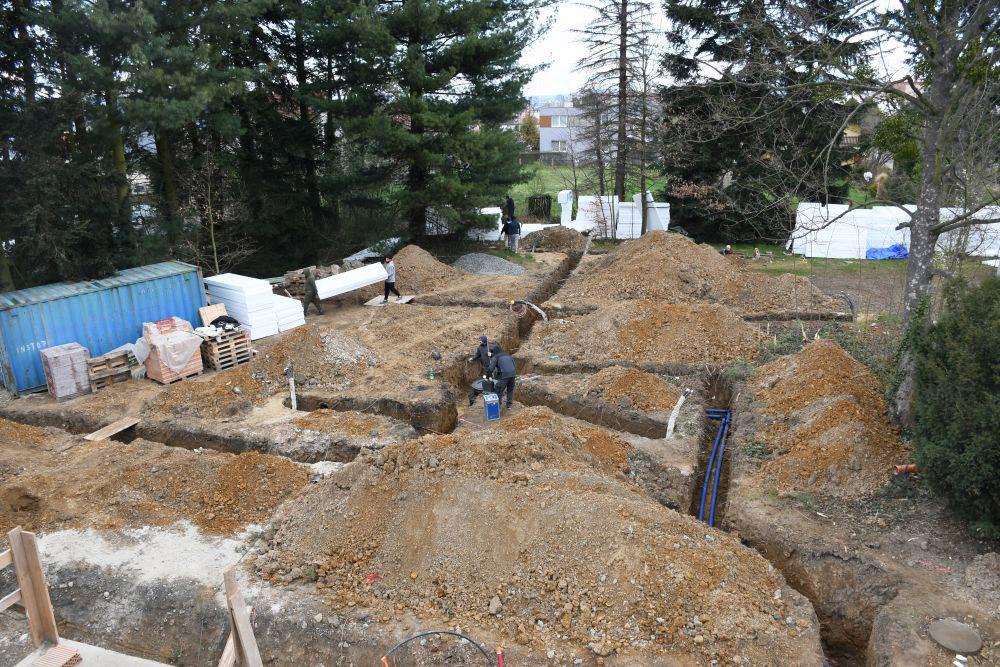 | Obr. 1: Vykopané základy KKC na místě bývalých garáží. Autor: Hvězdárna Valašské Meziříčí, p.o. |