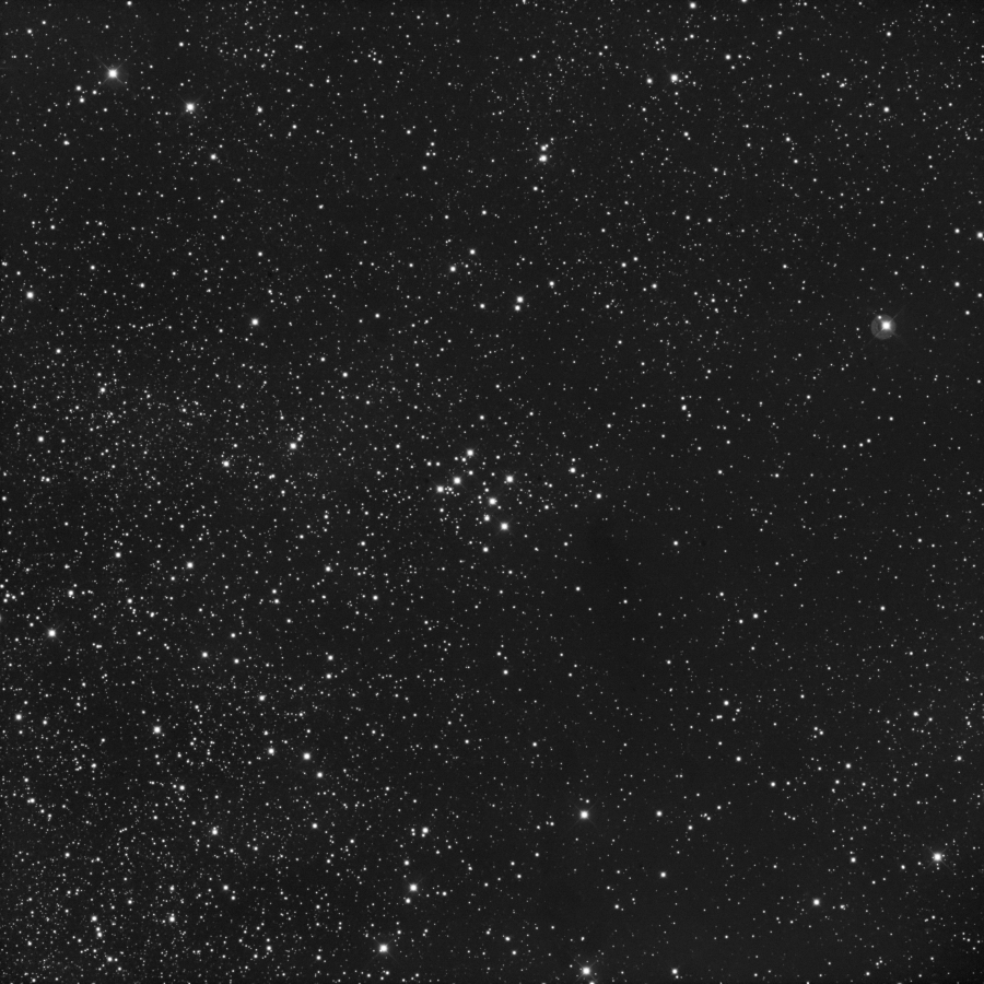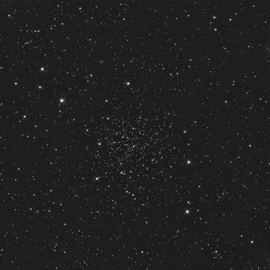 M29 (NGC 6913, Cr 422) je malá a poměrně řídká otevřená hvězdokupa v souhvězdí Labutě (Cygnus), vzdálená přibližně 5 200 světelných let od Země. Její úhlová velikost je zhruba 7′, což odpovídá skutečnému průměru přibližně 11 světelných let. Odhadovaný věk se pohybuje kolem 10 milionů let a v samotném shluku je identifikováno 20 až 30 členů, i když v bohatém hvězdném poli Labutě bývá obtížné přesně odlišit skutečné členy od náhodně promítnutých hvězd (Obr. 2).