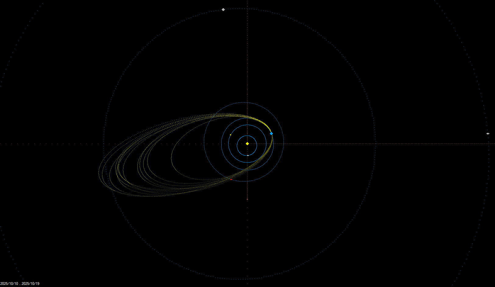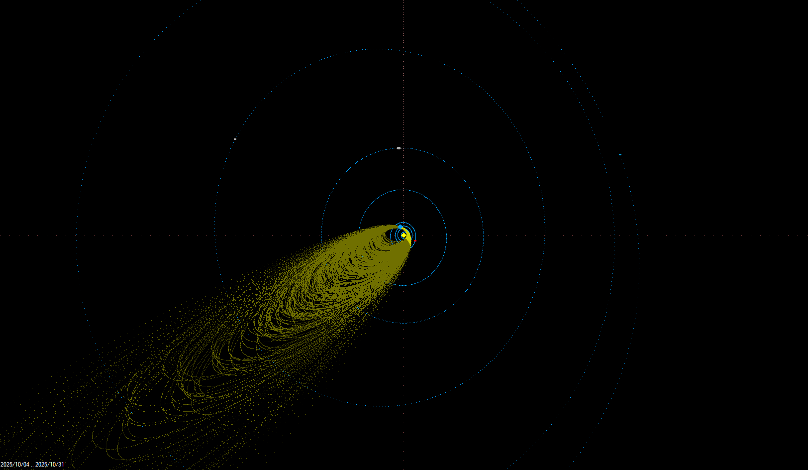 Na začátku měsíce října nastává v krátkém sledu po sobě maximum meteorických rojů říjnových Camelopardalid (OCT, maximum 5. 10.) a Draconid (DRA, maximum 8. 10. v 15 UT). Oba roje jsou nepravidelné, druhý jmenovaný v první polovině minulého století meteorické deště (v letech 1933 a 1946 až tisíce meteorů za hodinu). V letošním roce nebyla aktivita říjnových Camelopardalid detekovatelná, v případě Draconid byly zaznamenány 2 vícestaniční dráhy, předpovězená vysoká aktivita (až 500 met/hod) nebyla pozorována. Dalším meteorickým rojem uváděným i pro vizuální pozorování jsou Leo Minoridy (LMI, maximum 24. 10.), které poskytly díky kamerám sítě CEMeNt v říjnu 2025 celkem 33 vícestaničních a drah a byly tedy 4. nejsilnějším rojem v tomto měsíci. Hlavním meteorickým roje v říjnu jsou ovšem Orionidy (ORI, maximum 21. 10. s možností vedlejších maxim), jejichž mateřským tělesem je nejznámější kometa 1P/Halley (stejně jako v případě květnových eta Aquarid). Běžná korigovaná hodinová frekvence Orionid dosahuje 20 meteorů, maximum nastalo podle grafu vizuální aktivity IMO VMDB (International Meteor Organization Visual Meteor Database) 22. 10. 2025 ráno (1:56 UT) a maximální korigovaná hodinová frekvence dosáhla v letošním roce 19,0 ± 4,1 meteorů. Kamery sítě CEMeNt však zaznamenaly celkem 437 vícestaničních drah Orionid, což je po meteorickém roji Perseid druhý nejvyšší počet z meteorických rojů, které byly již aktivní v tomto roce. Aktivita komplexu komety 2P/Encke prochází v říjnu prvním maximem činnosti (jižní větev), zaznamenány byly vícestaniční dráhy členů komplexu, převážně s radianty v souhvězdí Ryb, Berana a Býka. Jednalo se o jižní Tauridy (STA, 223 drah), severní Tauridy (NTA, 80 drah), severní delta Piscidy (NPI, 39 drah), jižní delta Piscidy (SPI, 17 drah) a nu Piscidy (NPS, 17 drah).