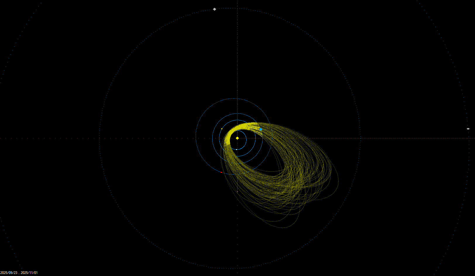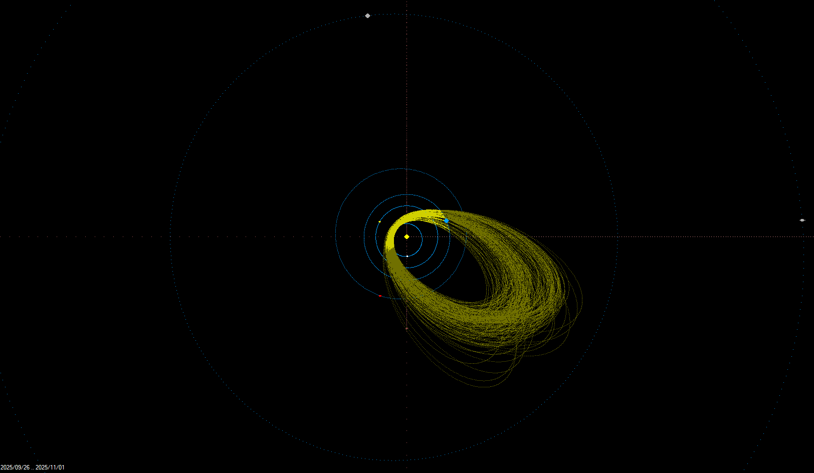 Na začátku měsíce září doznívá aktivita meteorického roje Aurigid (AUR), jejichž maximum nastalo podle grafu vizuální aktivity IMO VMDB (International Meteor Organization Visual Meteor Database) 1. 9. 2025 ráno (2:05 UT) a maximální korigovaná hodinová frekvence Aurigid dosáhla v letošním roce 11,6 ± 1,8 meteorů. Maximum meteorického roje zářijových epsilon Perseid (SPE) nebylo vizuálně monitorováno, nejvyšší korigovaná hodinová frekvence dosáhla 8,0 ± 2,3 meteorů ve večerních hodinách 16. 9. 2025 (21:34 UT). Meteorický roj je známý svou nepravidelnou aktivitou, která v některých letech vykazuje krátké zvýšení aktivity, tzv. outbursty (např. v roce 2013). Na konci měsíce se pak začala projevovat aktivita komplexu komety 2P/Encke, zaznamenány byly dráhy meteorů patřících k meteorickým rojům nu Piscid (NPS) a severních (NPI) a jižních delta Piscid (SPI). Na tyto roje pak v říjnu navazuje aktivita hlavního meteorického roje komplexu komety 2P/Encke, jímž jsou Tauridy. Tento meteorický roj známý jasnými bolidy se rovněž dělí na severní (NTA) a jižní (STA) větev.