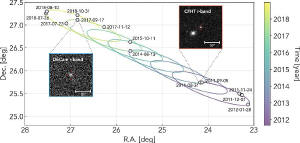 „Afélium objektu – nejvzdálenější bod na oběžné dráze kolem Slunce – je více než 1600krát vzdálenější než oběžná dráha Země,“ vysvětluje Cheng. „Mezitím je jeho perihélium – nejbližší bod na jeho oběžné dráze kolem Slunce – 44,5krát vzdálenější než oběžná dráha Země, podobně jako oběžná dráha Pluta.“