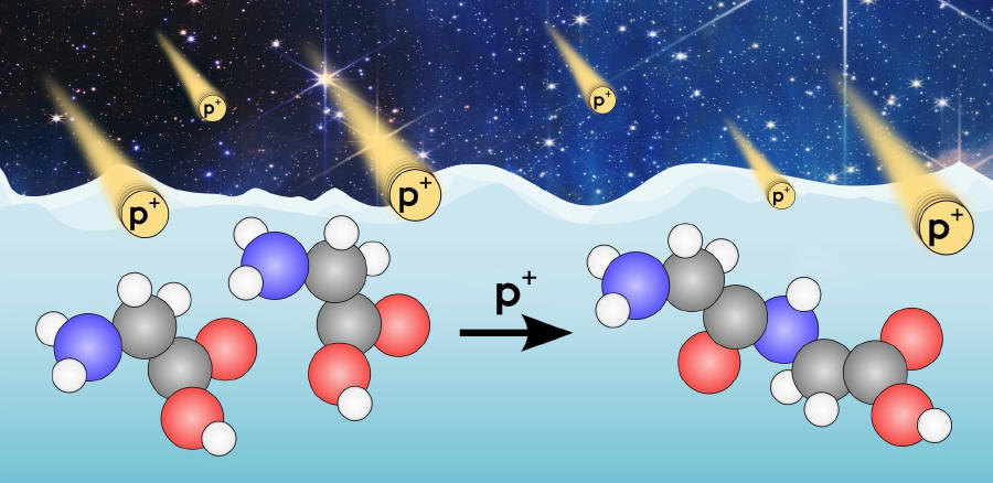 „Viděli jsme, že molekuly glycinu začaly vzájemně reagovat za vzniku peptidů a vody,“ řekl hlavní autor studie Alfred Thomas Hopkinson, výzkumník z Centra pro mezihvězdnou katalýzu (CIC) na Aarhus University. „To naznačuje, že stejný proces probíhá i v mezihvězdném prostoru. Je to krok k tvorbě proteinů na prachových částicích, tedy na stejných materiálech, které později vytvoří skalnaté planety.“